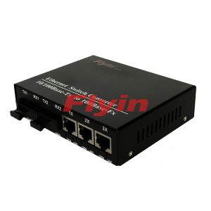 10/100M Industrial Fiber media converter with 3 RJ45 port+2 Fiber port